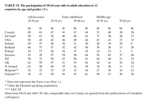 Data shows how an understanding of Malcolm Knowles’ principles can be used to bolster both external training and self-directed study. Note in the graph below the high adult learning rates of Sweden when compared to other rates in Canada, the US, and various European countries: