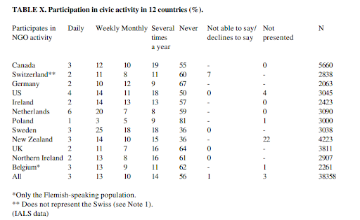 Further research found that learning readiness in Sweden was also highest, as its residents participated in the highest levels of civic involvement. See the graph below.